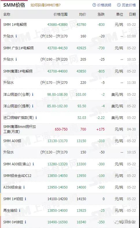 上海有色金屬最新行情