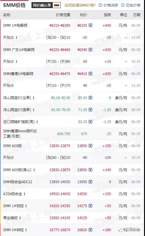 上海有色金屬最新行情